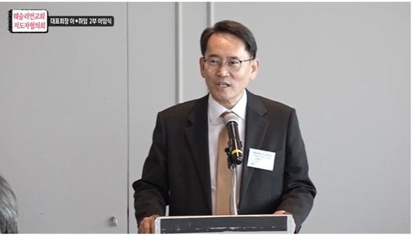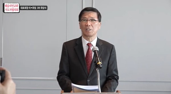 이어 웨협창립발기인인 양기성 목사가 나와서 이임하는 박동찬목사(13대 대표회장/일산광림교회담임)을 소개한 후 박동찬목사의 이임사가 이어졌다.