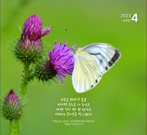 "어둠을 밝히던 촛불 마지막 촛농을 다 녹이고 까만 심지 한 점 남기고 사명의 종지부를 찍으련다"