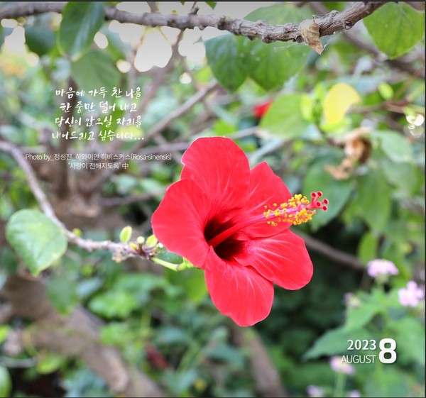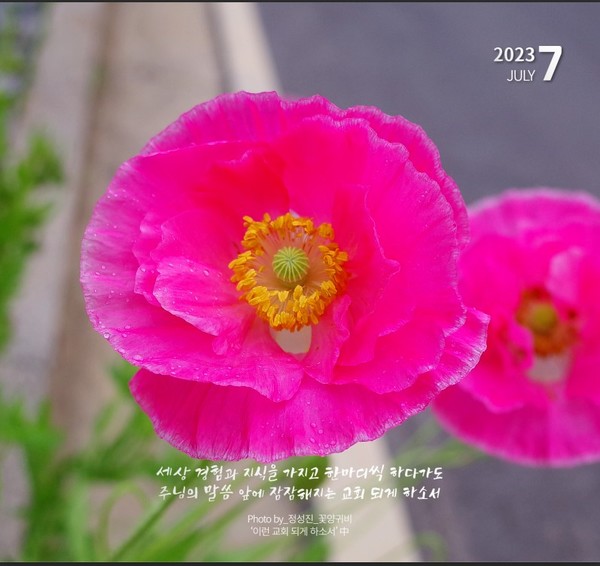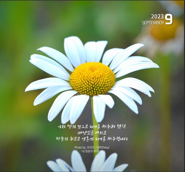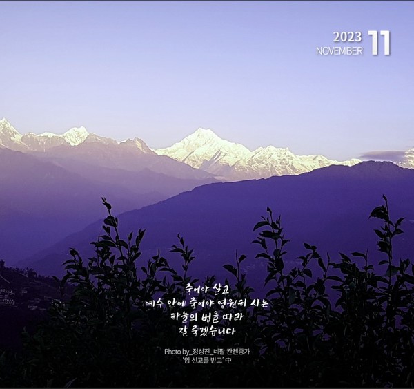 정성진 목사는 꽃을 좋아하고 일생동안 4만장 이상의 꽃 사진을 찍었다고 한다. 테이블 위에 놓여있는 달력을 보았다. 그 달력은 목사님이 직접 찍고 꽃 사진에 짧은 아티글이 새겨져 있다. 달력에 자신의 삶의 이야기를 담고 있었다. 사진과 글이 매칭이 잘되고 구성도 잘했다. 매력이 있는 분이다.