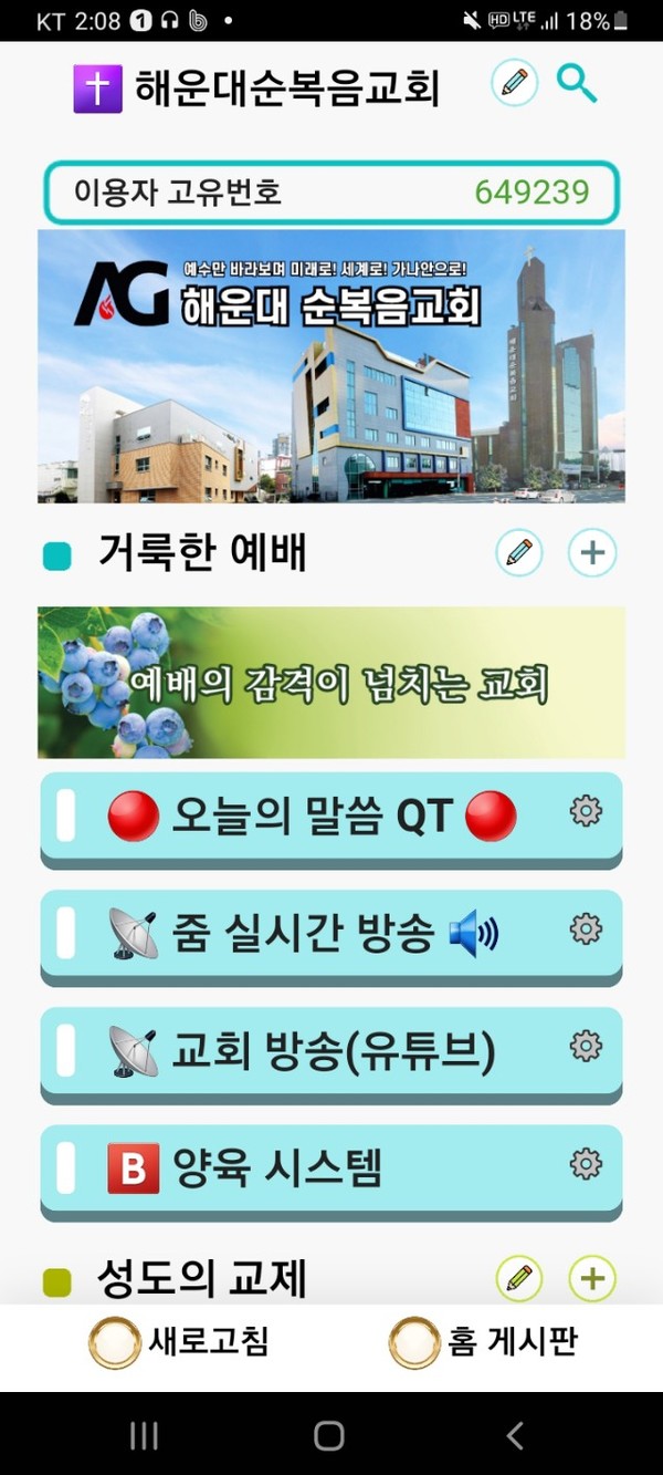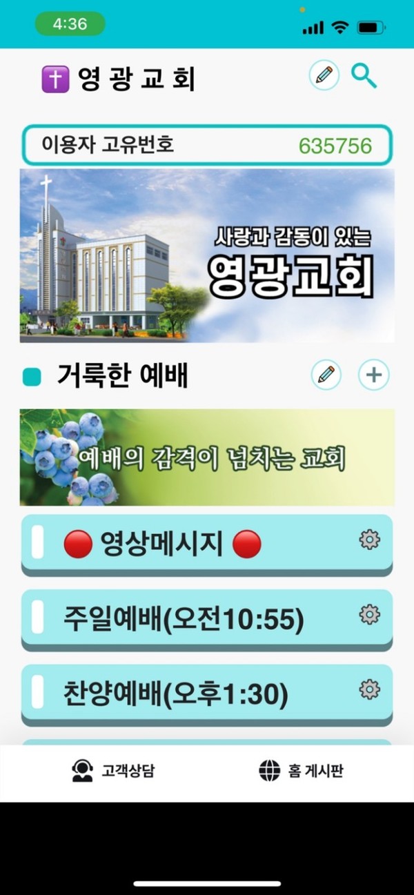 최근에 개발된 앱을 "예장개혁총회", "세상의 빛으로 다시 서는 감리교회", "영광교회","해운대 순복음교회"가 설치했다.