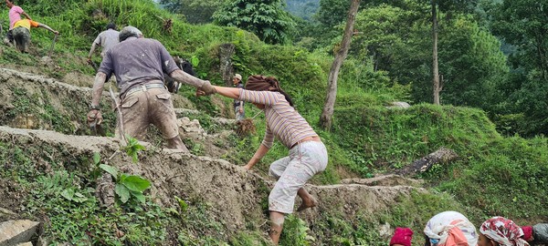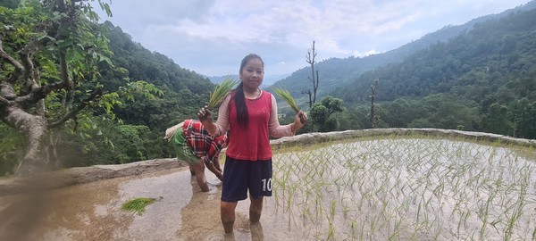 모내기를 하면서 함박웃음을 짓는 비누마야라이(여39세)씨는 "고향을 지키며 사는 것이 얼마나 행복한지 모르겠습니다. 그저 감사할 뿐입니다. 한 자락의 작은 논이고 거친 비탈이지만 심으며 거둘 것을 기대할 수 있다는 자체가 너무 행복합니다." 말합니다.