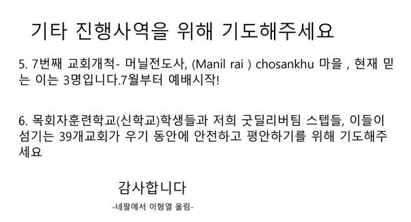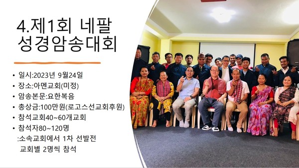 이전 기사보기 다음 기사보기 [이형열_네팔선교]성경암송대회 스크롤 이동 상태바 현재위치 국외 [이형열_네팔선교]성경암송대회 입력 2023.07.27 07:55 수정 2023.07.31 17:46 글자 크기 본문 글씨 키우기 본문 글씨 줄이기 프린트 인쇄하기 SNS 기사보내기 기사저장 다른 공유 찾기 이 기사를 공유합니다 닫기 7월 네팔소식 저작권자 © 본헤럴드 무단전재 및 재배포 금지 관련기사 네팔 포토뉴스3 "Nagarkot Tower(나가르콧 타워)" 네팔포토뉴스"네팔은 토요일이 공휴일입니다" 본헤럴드 webmaster@bonhd.net 다른기사 보기 개의 댓글 회원로그인 작성자 비밀번호 댓글 내용입력 댓글 정렬 최신순 추천순 답글순 BEST댓글 BEST 댓글 답글과 추천수를 합산하여 자동으로 노출됩니다. 닫기 더보기 댓글삭제 삭제한 댓글은 다시 복구할 수 없습니다. 그래도 삭제하시겠습니까? 비밀번호 댓글수정 댓글 수정은 작성 후 1분내에만 가능합니다. 본문 / 400 비밀번호 내 댓글 모음 닫기