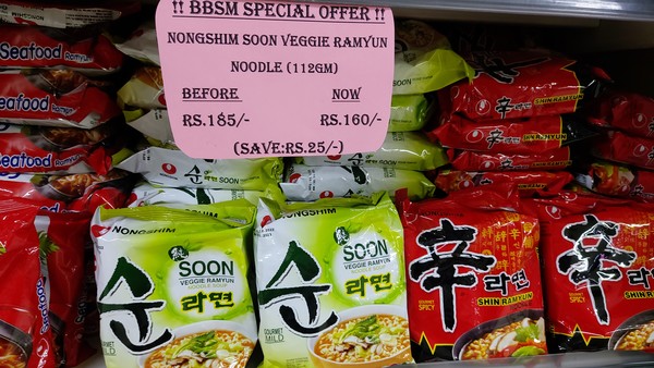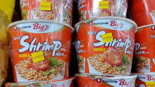 네팔의 유명 관광지나 대도시의 큰 마트에는 한국라면을 팔고 있습니다. 카트만두에서 가장 큰 마트인 Bhat-Bhateni 슈퍼마켓에 들렸습니다.
