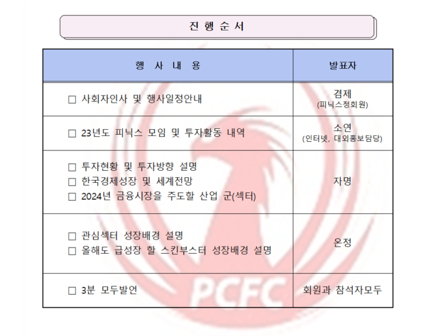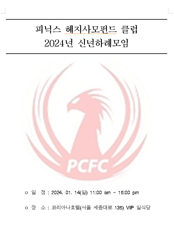 블루애플 자산운영사 CEO 자명이 운영하는 피닉스 신년하례모임이 2024년 1월 14일 코리아나 호텔 VIP룸에서 진행되었다.