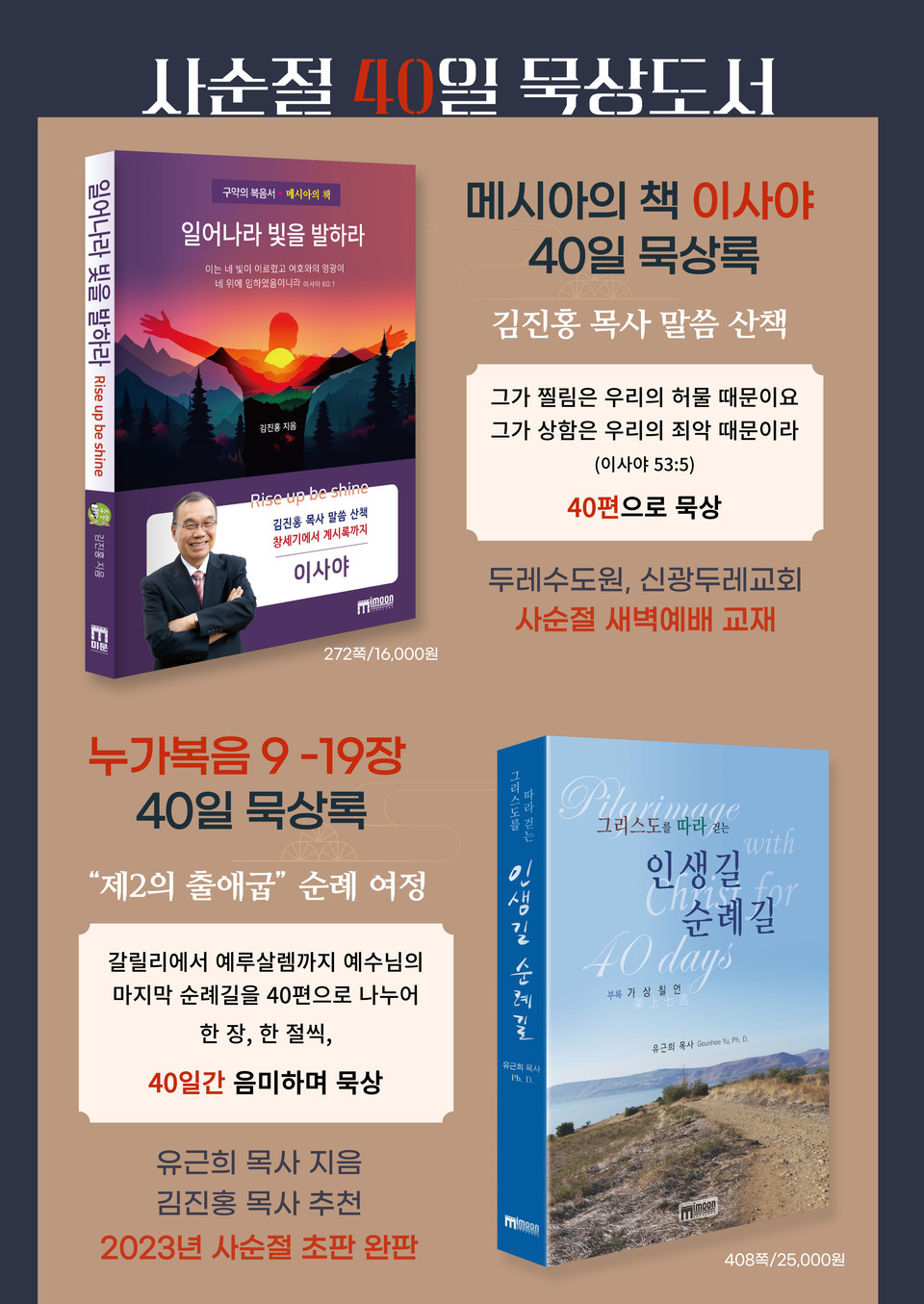 2024년 사순절 기간에 이사야서를 묵상하며 거룩하게 보내기를 원하는 뜻에서 40일간 이사야서를 묵상하는 내용으로 책으로 출간합니다. 올해 부활절에 부활하신 그리스도를 새롭게 만나게 되기를 기대하며 사순절 기간을 이사야서 묵상으로 보낼 수 있기를 바랍니다.