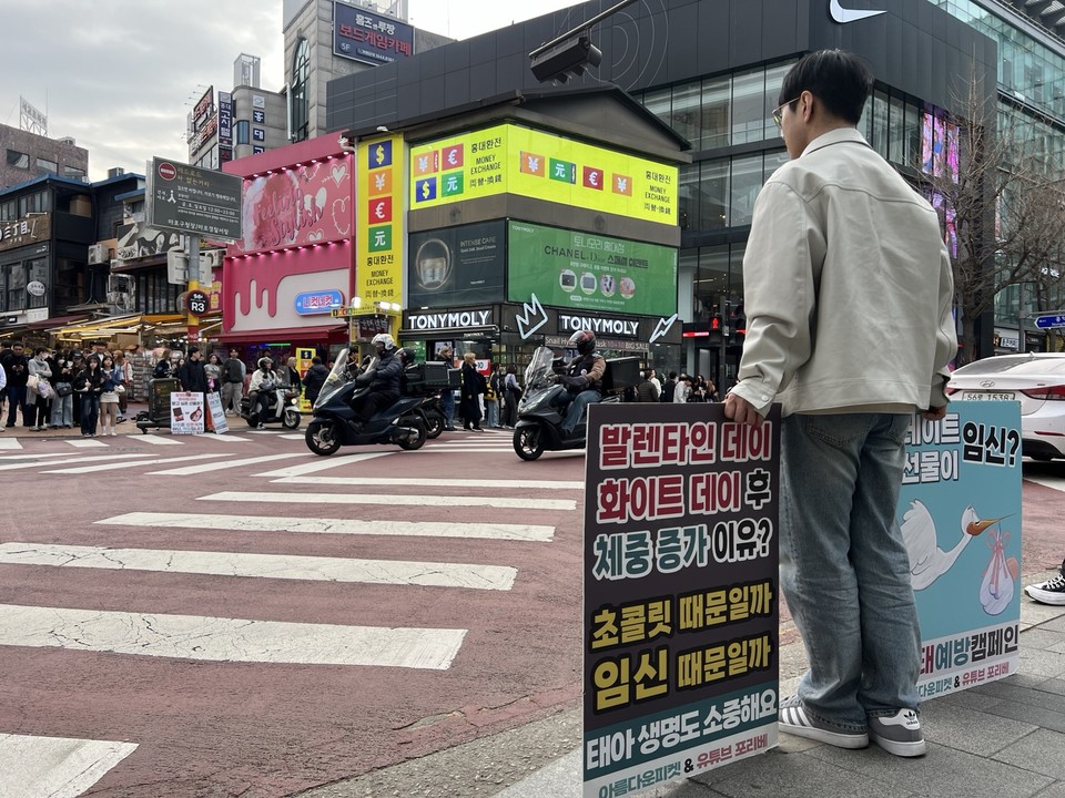 ‘아름다운피켓’(대표 서윤화 목사)이 지난 16일 화이트데이를 맞아 태아 생명 존중 캠페인을 진행했다.