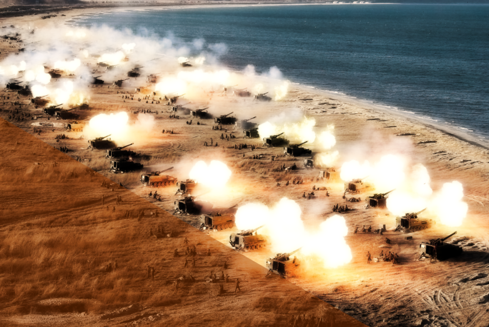 두 번째요 마지막인 한반도의 전쟁은 역시 북한의 선공으로 시작되었다. 휴전선 155마일 전 전선에 길게 늘어진 최신식 방사포 부대와 후방의 장거리 미사일 부대가 삽시간에 강철비를 쏟아 부었다. 전후방 가릴 것 없이 남한의 모든 지역을 타겟으로 무자비한 공격이 번개처럼 이루어졌다. 한 시간 이내면 남한 전역이 불바다로 화할 것이다. 오직 이 날만을 위해 3대에 걸쳐 타격 능력을 길러온 북한의 의도는 남한의 격멸에 의한 적화 통일이다.
