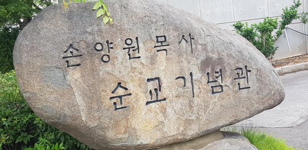 여수 애양원을 찾았을 때는 오후 4시쯤 되었습니다. 먼저 찾은 곳이 손양원 목사님의 묘소였는데, 다른 친구 목사들은 동산에 외로이 있는 묘지만 보고 급히 그 곳을 빠져나갔습니다. 그러나 필자는 처음으로 찾은 애양원을 쉽게 떠나기가 아쉬워 무덤 주위를 둘러보게 되었는데, 비석 뒤쪽에 적혀있는 글을 읽으며 진한 감동을 느꼈습니다.