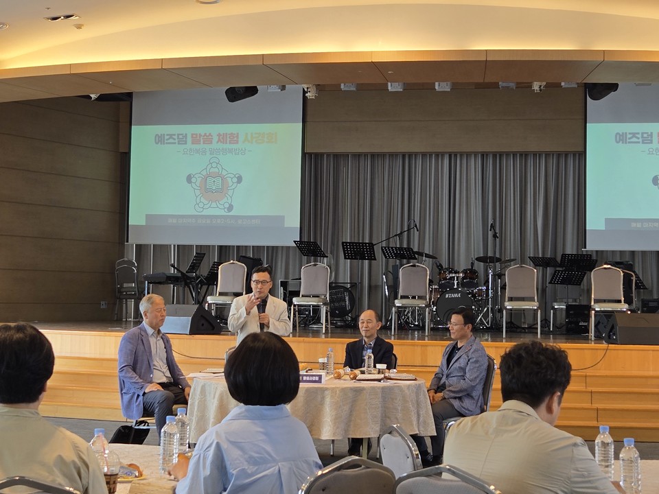이어 이대희 목사는 “예즈덤 말씀 사경회 진행 방식은 요한복음 4장에 나오는 수가 동네 사마리아 여인이 예수님의 질문에 응답하면서 주님을 직접 만나 삶이 달라진 예수 방식을 모델로 삼아(미리토크 방식) 말씀 체험과 배움으로 진행된다. 즉, 본문을 통해 주시는 하나님의 질문에 책임감을 갖고 응답하기 위해 모였다. 삶의 변화는 하나님의 질문에 응답하다보면 어느새 내가 변화됩니다.”라고 말헸다.