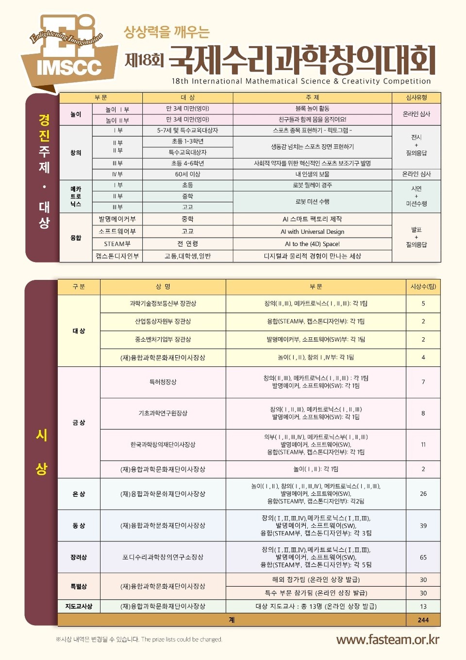 영아부터 시니어까지 전 세대가 참여하는 국제 교류 행사인 이번 ‘2024 제18회 상상력을 깨우는’ 국제수리과학창의대회 & 콘퍼런스 (International Mathematical Science Creativity Competition & Conference, IMSCC 2024)는 매년 10월 3째 주에 대한민국에서 정기적으로 개최되어 올해 18회 대회의 명성을 이어가고 있으며, 세계 각국에서 미래 역량 강화를 위한 창의력과 협력적 문제해결 중심의 융합(STEAM) 교육과 지속가능한 지구를 위한 교육(Eduction for Sustainable Development: ESD)의 사례를 나누고 협의하고 실천하며 다음 세대를 위한 역량 강화를 위한 국제 교류이다.