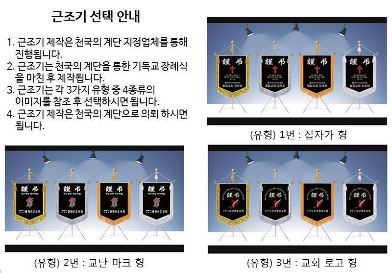정문섭 대표는 “그 동안 수많은 장례식을 맡아 장례 서비스를 진행해 오면서 가장 안타까웠던 것은 작은 교회들 대부분이 근조기가 없다는 것입니다. 큰 교회들은 몇 개까지 있는 경우도 있지만, 작은 교회는 성도들의 장례시 근조기가 없어서 안타까워하는 모습을 자주 목격했습니다. 그 때마다 20~30만원 하는 근조기도 부담스러울 수 있겠다는 생각이 들었습니다. 그래서 그런 작은 교회들에게 근조기를 제작해 나누고 싶은 마음이 들었습니다. 아무래도 빈소에 교회 이름이 새겨진 근조기를 세워두면 유가족들에게 더욱 힘이 되고 전도에 효과가 있을 것이라고 생각됩니다.”라고 말했다.