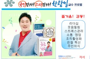 ▼한광일 박사 웃음치료 KBS특강영상 한광일 교수는 현재 사)국제웃음치료협회 회장, 한국레크리에이션협회 회장, 한국열린사이버대학교 석좌교수, 미국 콘코디아국제대학교 교수, 한국강사은행 총재, 세계왕대회 대회장, 뉴스세계 발행인, 세계예술치유박사위원회 총재로 활동하고 있다.연세대학교 사회복지 석사, 서울대학교 산림환경 박사 수료를 했다. 한광일 교수는 네이버, 구글, 다음 등 인터넷에서 수십만 건이 검색될 정도로 유명한 인기강사, 스타강사, 국민강사다.웃음치료사, 힐링지도사, 소통강사 창시자로 불철주야 한국과 세계를 무대로 강연을 하