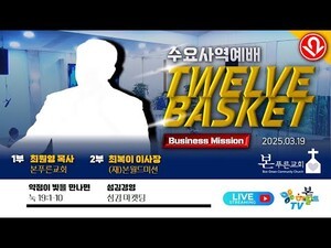 TWELVE BASKETBUSINESS MISSION Ministry WORSHIP ●사명선언문(비전)“나의 일터는 5병 2어의 기적과, 소명(Cailling)을 이루는 선교의 장이다”(요6:13) ●장소 : 본푸른교회●일시 : 2024. 12. 18. AM 5시●주소 : 경기도 구리시 벌말로 80번길 100