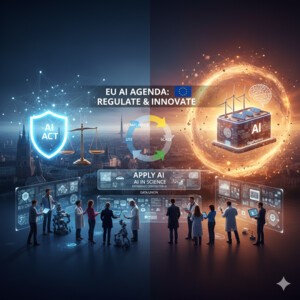 유럽연합(EU)이 인공지능(AI) 전략의 기어를 완전히 바꿨다. 인공지능(AI) 패권 경쟁이 미-중 양강 구도로 굳어지는 듯했던 세계 무대에 유럽연합(EU)이 강력한 도전장을 내밀었다. EU 집행위원회가 최근 발표한 ‘어플라이 AI(Apply AI)’와 ‘AI 인 사이언스(AI in Science)’라는 두 개의 핵심 전략은, 그동안 ‘규제자’ 역할에 머물러 있던 EU가 이제 ‘혁신 주도자’로 거듭나겠다는 야심찬 선언이다. 이는 단순한 정책 발표를 넘어, 규제(Compliance) → 적용(Use) → 확산(Scale)으로 이어지는