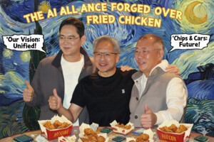 2025년 10월 30일 저녁, 서울 삼성역 근처의 평범한 ‘깐부치킨’이 세기의 회의실로 변했다. 회동 장소인 소박한 '깐부치킨'은 우연이 아니었다. 넷플릭스 히트작 오징어 게임을 통해 전 세계에 알려진 '깐부'는 단순한 파트너를 넘어, 운명을 공유하는 신뢰의 동맹을 의미한다. 평범해 보이는 이 '치맥' 회동은 사실 고도로 계산된 전략적 메시지였다. AI 시대를 지배하기 위해 새롭고 깨지지 않을 동맹의 탄생을 세상에 공표하는 선언식이었던 것이다. 엔비디아의 젠슨 황, 삼성의 이재용, 현대차의 정의선—이 세 사람이 나란히 어깨를 맞대
