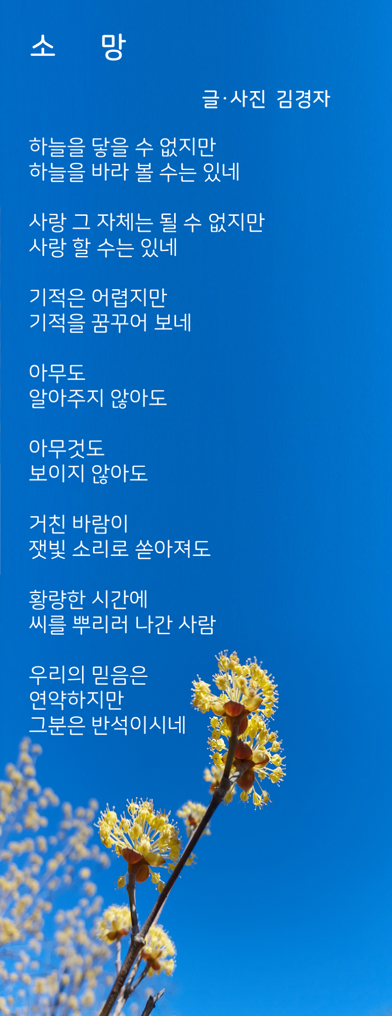 관련기사 【한명철 목사 칼럼】 COVID19 소회(所懷) [사순절 경건, 24일] 믿고 구하는 것은 다 받으리라(마21:18-22) [사순절 경건, 25일] 종교인이냐? 세리와 창녀냐?(마21:23-32) 장국진 목사의 사진세계와 말씀-62 【김경자 목사】 Psalms 151, 『사랑』 【김경자 목사】 Psalms 151, 『여름 풍경』 【김경자 목사】 Psalms 151, 『숲속의 위로』 【김경자 목사】Psalms 151, 『눈꽃』