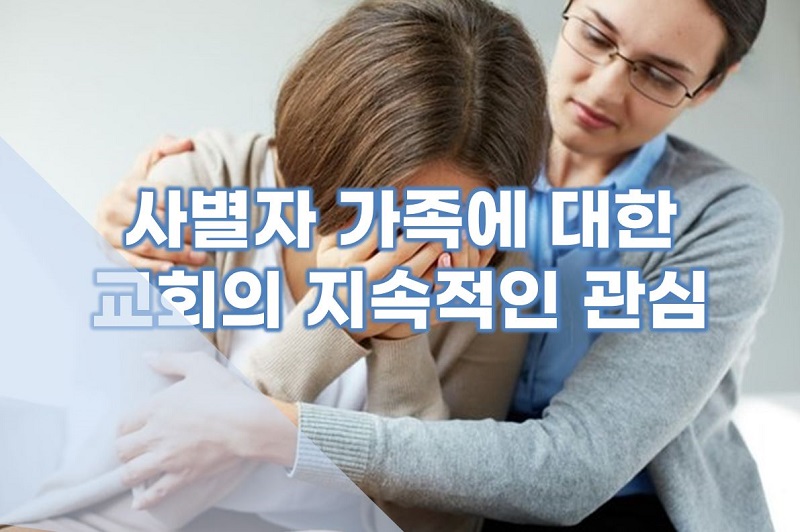 사랑하는 가족과의 사별은 무엇으로도 표현하기 어려운 고통이지만 특별히 고인이 가정의 경제권을 가진 경우라면 그 고통이나 후유증은 심각한 지경에 이르게 됩니다. 자녀들이 아직 어린데 사랑하는 아내 혹은 남편과 사별을 하는 경우 어떻게 하고 어린 자녀들의 양육은 어떻게 해야 할까? 이러한 경우일수록 교회 내에 가족상실의 비통함을 극복한 경험자 그룹의 역할이 중요합니다. 그리고 교회는 이들에게 지속적인 관심과 도움을 주므로 재활의 기회를 제공할 수 있습니다. 뿐만 아니라 이들을 통하여 유사한 고통 속에서 아픔과 슬픔을 당한 사람들에게 희망을 주는 그룹으로 활용한다면 몇 배의 효과를 거둘 수 있을 것입니다.