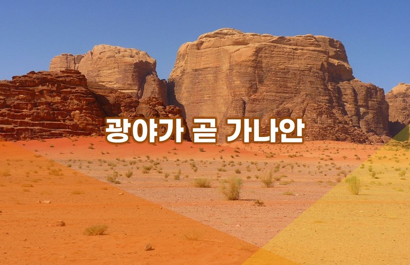 광야와 가나안은 매우 이질적이고 대조적인 실체로서 확실히 구분되어야 마땅하다. 광야는 애굽을 떠난 이스라엘 백성이 반드시 거쳐야 하는 연단의 땅이다. 이에 비해 가나안은 그들 순례의 종착지로서 복지에 해당한다. 그런데 영적 경험 세계에서는 서로 다른 두 곳의 모습이 얼마든지 뒤바뀔 수 있다. 즉 광야는 광야가 아니라 영적 가나안이라는 말이다. 이 말은 가나안도 얼마든지 광야일 수 있음을 의미한다. 이스라엘 백성은 천신만고 끝에 실제 가나안으로 들어갔지만 4반세기도 되기 전에 무너지고 말았다. 430년 종살이를 끝내고 광야 40년의 고된 여정을 지나 1세대는 거의 몰사당하고 여호수아와 갈렙 두 사람과 광야 2세대만 꿈에도 그리던 약속의 땅에 들어갔지만 그들은 가나안을 약속의 땅으로 계속 이어가지 못했다. 믿음을 포기한 이스라엘 백성은 약속의 땅 가나안을 저주의 땅이라 불리던 광야보다 더 지독한 광야로 돌변시키고 말았다. 설상가상으로 믿음의 영웅이었던 여호수아에 이어 갈렙마저 떠나자 그 많은 백성을 이끌만한 지도자가 보이지 않았다. 군중들의 믿음은 어디까지나 신앙의 영웅들이 생존한 기한까지였다.