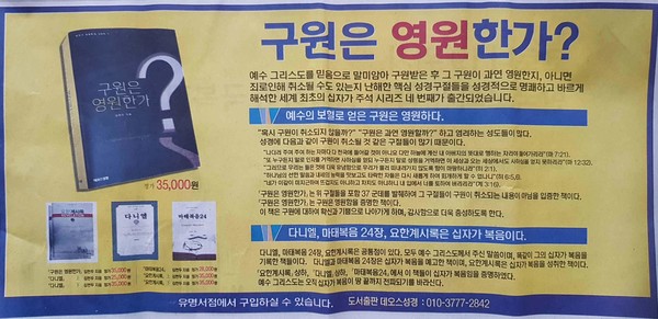 김현두 목사는 선민교회를 목회하면서, 저술과 강연 활동을 하고 있는 유력한 사역자이다. 김 목사는 3권의 저서(다니엘, 마태복음 24장, 요한계시록(상, 하)를 집필했다. 그리고 <구원은 영원한가?>를 최근 출판했다. 어떤 사상가든지 면밀한 검토를 해야 한다. 김현두 목사의 사상도 독특성을 주장하기 때문에 면밀하게 검토하여 이해한 뒤에 자세를 취해야 한다. <기독신문에 게재된 광고>