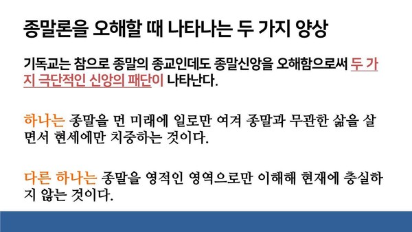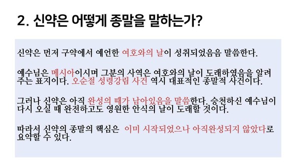 이전 기사보기 다음 기사보기 종말이란 무엇인가? 스크롤 이동 상태바 현재위치 신학 종말이란 무엇인가? 입력 2020.04.11 09:39 수정 2020.04.13 19:47 글자 크기 본문 글씨 키우기 본문 글씨 줄이기 프린트 인쇄하기 SNS 기사보내기 기사저장 다른 공유 찾기 이 기사를 공유합니다 닫기 저작권자 © 본헤럴드 무단전재 및 재배포 금지 관련기사 [사순절 경건, 39일] 십자가에 못 박히신 예수님(마27:11-56) 최갑진 normar@naver.com 다른기사 보기 개의 댓글 회원로그인 작성자 비밀번호 댓글 내용입력 댓글 정렬 최신순 추천순 답글순 BEST댓글 BEST 댓글 답글과 추천수를 합산하여 자동으로 노출됩니다. 닫기 더보기 댓글삭제 삭제한 댓글은 다시 복구할 수 없습니다. 그래도 삭제하시겠습니까? 비밀번호 댓글수정 댓글 수정은 작성 후 1분내에만 가능합니다. 본문 / 400 비밀번호 내 댓글 모음 닫기