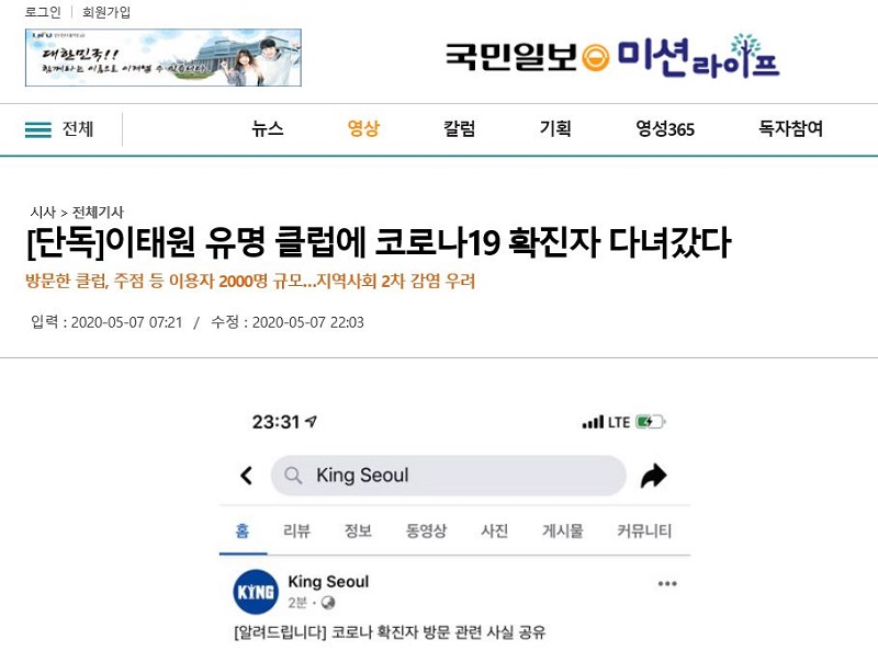국민일보 기자의 보도도 충분히 공익적 차원에서, 그리고 동성애를 포함한 다중이 모이는 클럽에서의 위험성을 알린 것이라고 본다. 이미 경기도청에서도 8일 이 클럽을 포함 3곳의 이름을 공개하였고, 종로구청에서는 그로 인한 접촉으로 종로구에서 17번째 확진자가 나온 것을 공표하고 있다. 또 해당 업소에서도 확진자 방문 사실을 공유하는 안내를 한 상태이다.
