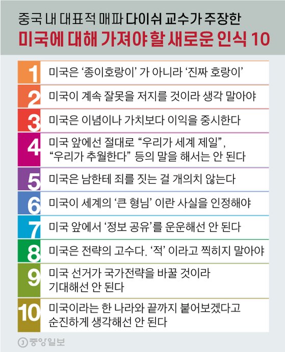 ⑨ 미국 선거가 국가전략을 바꿀 것이라 기대해선 안 된다. “미국을 다시 위대하게 만들겠다”는 미국의 핵심 전략은 바뀌지 않는다. 마지막은 미국이라는 한 나라와 끝까지 붙어보겠다고 순진하게 생각해선 안 된다는 점이다.