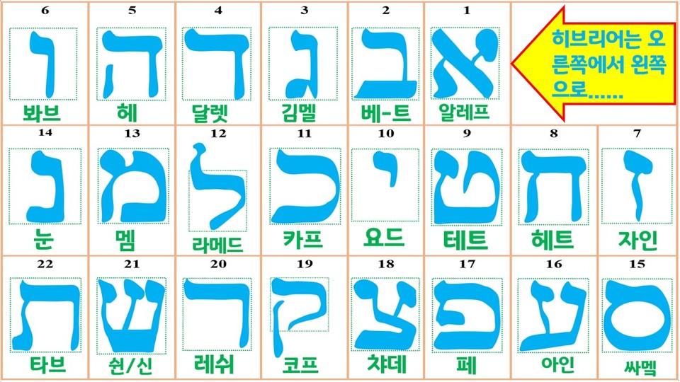 ▶히브리어는 오른쪽에서 왼쪽으로 쓴다.