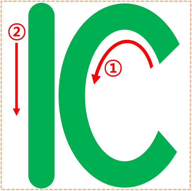 ▶①번: 쓰는 순서는 먼저 왼쪽 코너에서 오른쪽 아래 코너까지 쓴다.