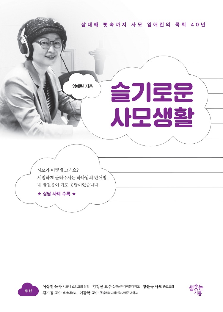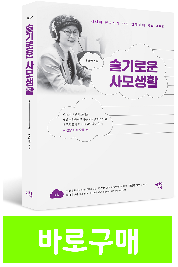 이에 3대째 목회자의 사모로 살아온 임애린 사모는『슬기로운 사모생활』(임애린, 샘솟는기쁨, 2020.8)을 통해서 사모의 자리를 단순히 목회자인 남편의 그늘에 가려진 자리가 아니라 부르심의 자리라는 하나님의 스팟라이트를 비추고 있다.