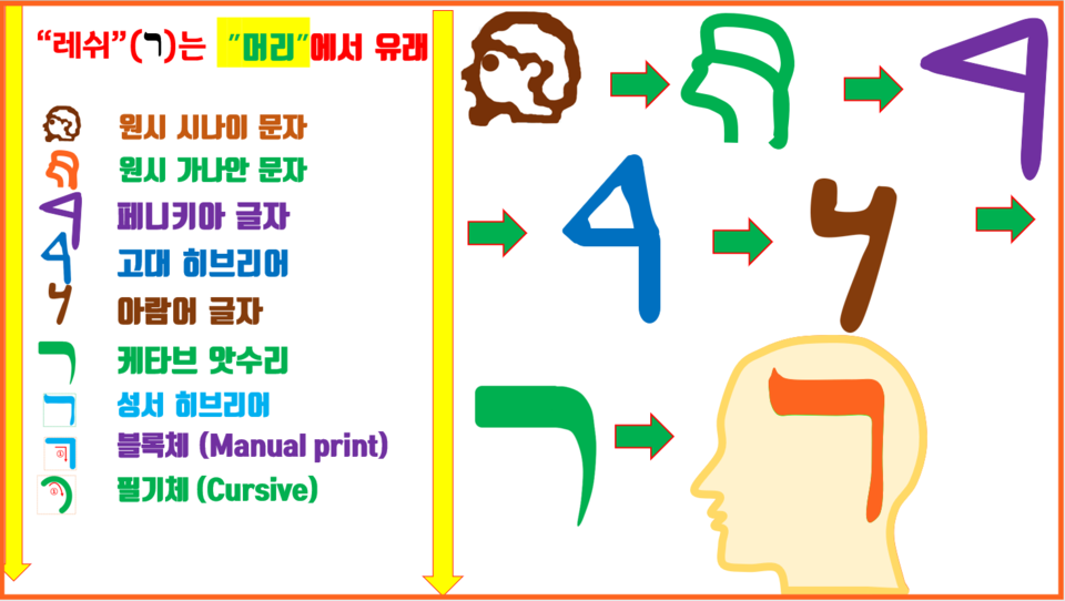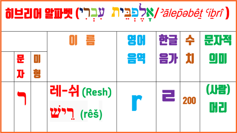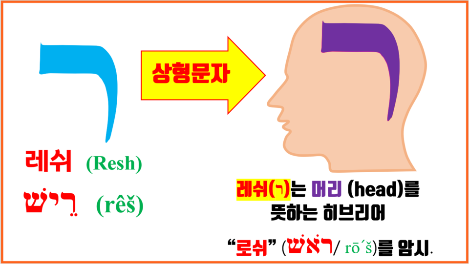▶그래서 레쉬(ר)는 머리를 뜻하는 히브리어 로쉬(רֹאשׁ)를 암시하고 있다.