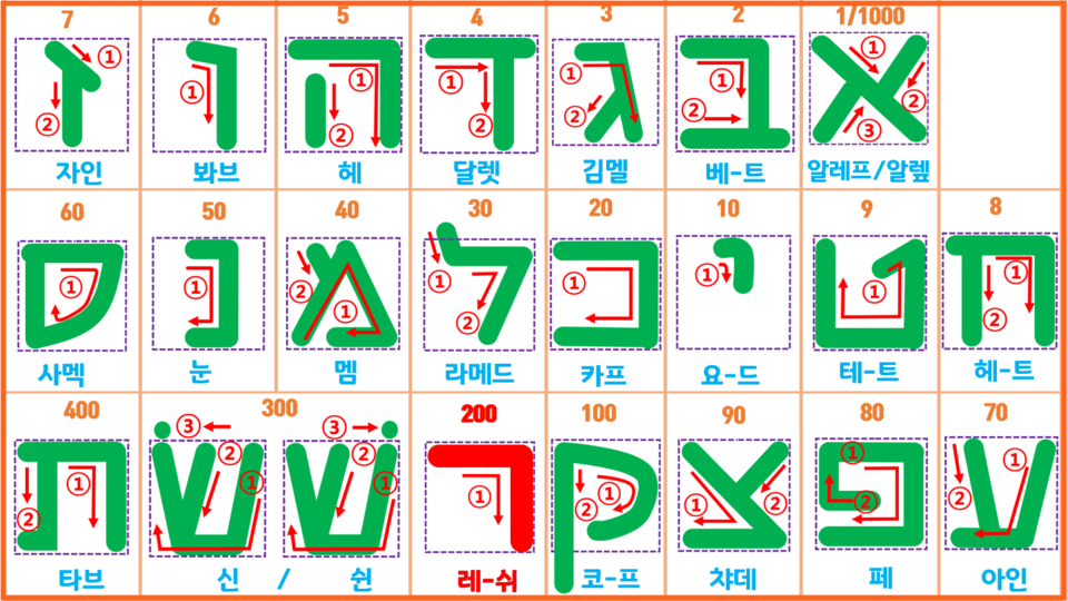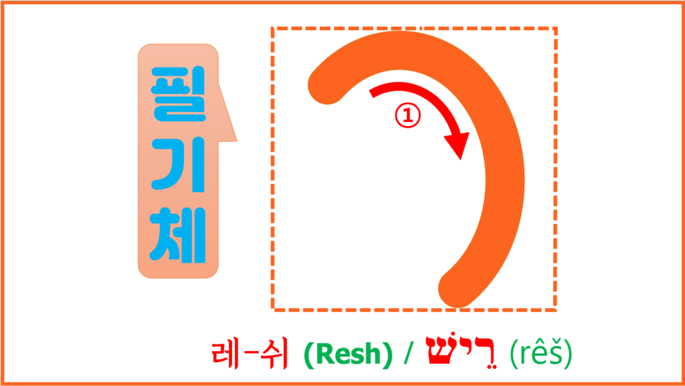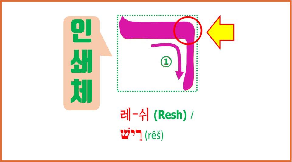 ▶붉은색 글자는 인쇄체 레쉬(ר)이다.