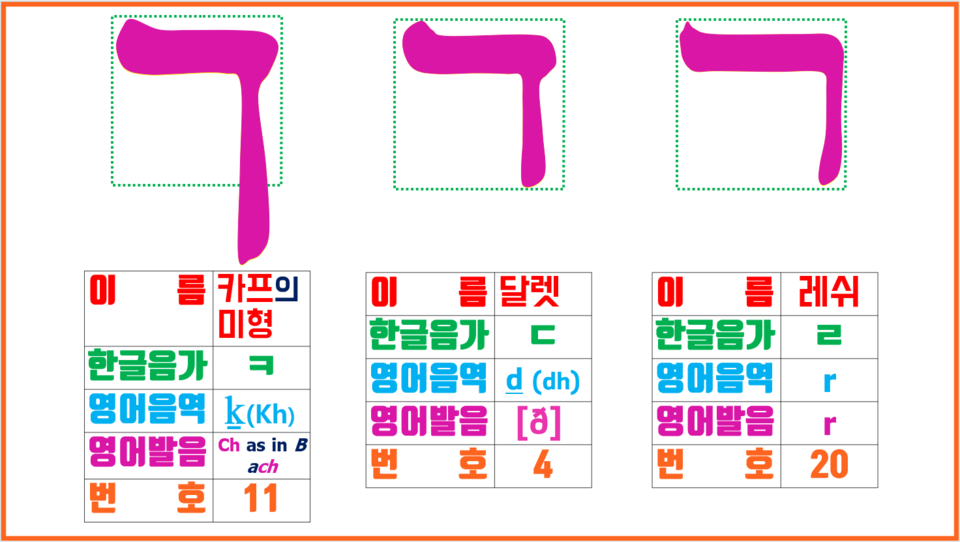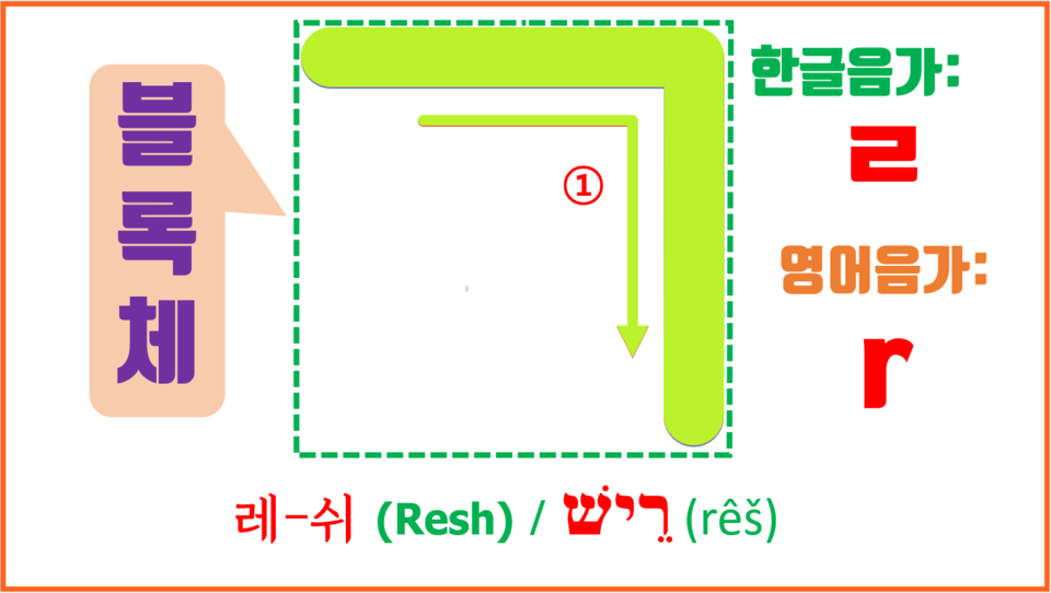 ▶여기 붉은색 글자는 블록체 레쉬(ר)이다.
