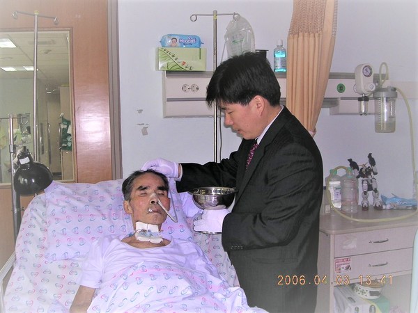 어느 날 중환자실에 누워있는 60대 중반의 할아버지 한 분을 만나게 되었다. 그 분의 외형은 살과 근육이 없어 뼈만 앙상하게 남아있었고, 목을 뚫어 음식을 섭취하며 생명을 겨우 부지하고 있는 상태였다. 그런 할아버지에게 복음을 전하라는 마음이 들어, 그분의 귀에 대고 간절한 마음으로 복음을 전했다. 그리고는 예수님을 영접하기 원하면 눈을 깜빡여 달라고 부탁하였다. 그는 눈을 깜빡였고, 나는 즉시 병상에서 세례를 베풀었다. 그분은 새롭게 시작된 열린문 교회의 첫 세례교인이 된 것이다. 얼마 후 할아버지는 하나님 품으로 갔고, 장례를 치루던 중 아내분의 놀라운 간증을 듣게 되었다.