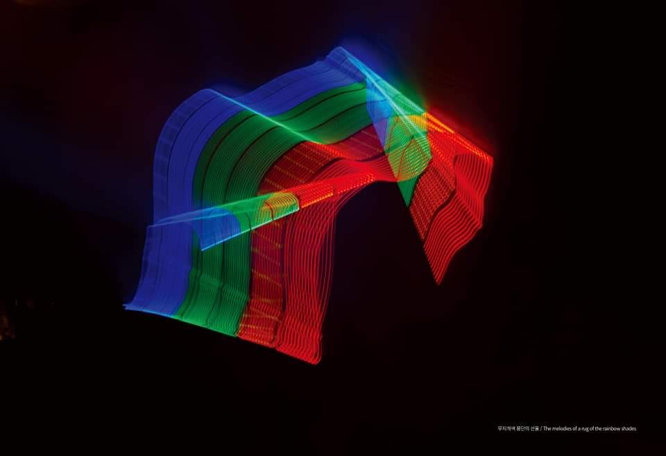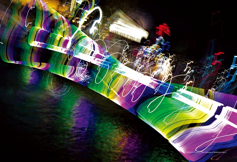 Recently, the artist has been focusing his passion on the art works to put the fantastic beauties which the light creates into the frames by accommodating the movements of light in the pictures. His work is composed up of the various materials such as objects, light, nature, downtowns and night views. The latest works of light are ushering in a new era in his art. The world of photography that the light reveals is always fantastic. He is trying to open a new world of photography art by using the exposure and shutter speed of the camera to the various shapes created by light which are the factors of filming time and movement. When you appreciate his works, you will experience a fantastic world such as the carpet of rainbows shining in the vast outer space, the lights pouring out and singing in the forest, the songs of flowers that rise and rise constantly, and the streets of the space city where the light emanates.