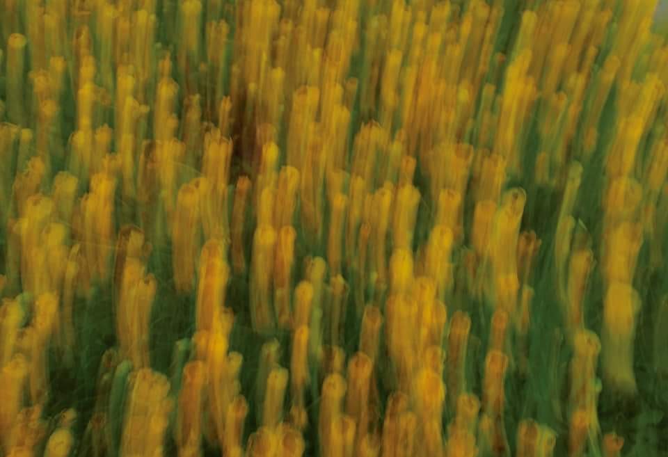 작가가 카메라를 조작하면서 빛을 찍어내는 방법을 선택한 이유는 바로 카메라가 사 물의 빛을 인식하는 광학기라는 점 때문입니다. 빛은 가시광선의 일곱 가지 무지개 색깔의 영 역 가운데에서 사물이 받아들이고 내뱉는 색의 구조에 따라 그 모양이 피사체에 대한 우리의 인식을 달리합니다. 그러나 카메라가 인식하는 빛의 세계는 사람이 인식하는 빛의 세계보다 훨씬 감도가 깊고 세미할 수가 있습니다. 작가는 이 점을 카메라에서 인식합니다. 그래서 카메라에서 인식할 수 있는 빛의 범위를 최대한 깊이 담아내보고자 하는 것이 작가의 의도입니다. 카메라 렌즈가 운동을 하고, 조리개와 셔터가 일정한 시간과 빛의 영역을 가짐으로써 작가는 모든 사물의 빛이 창조해내는 새로 끊임없는 운동의 모양을 포착해내는 것입니다. (P.247)
