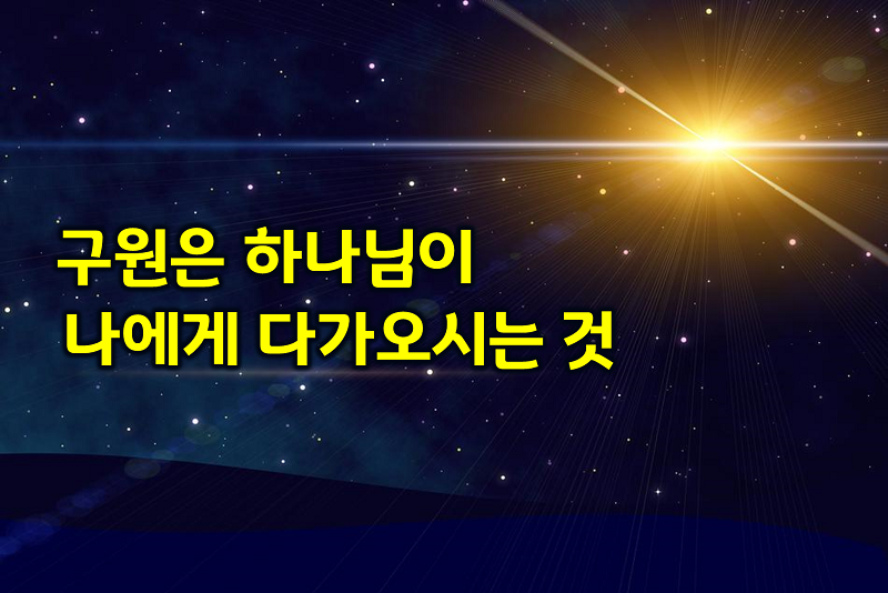 구원은 내가 하나님께 가는 것이 아닌 하나님이 나에게 다가오시는 것이다. 그것을 믿고 마음으로 모시면 나의 마음에 천국이 임한다. 우리는 흔히 내가 천국을 간다고 말하지만 엄밀히 말하면 천국은 내가 가는 것이 아닌 예수를 통하여 우리에게 임하신다. 신비롭게 임한 천국을 내가 받아들이는 것이 곧 구원받은 것이다.