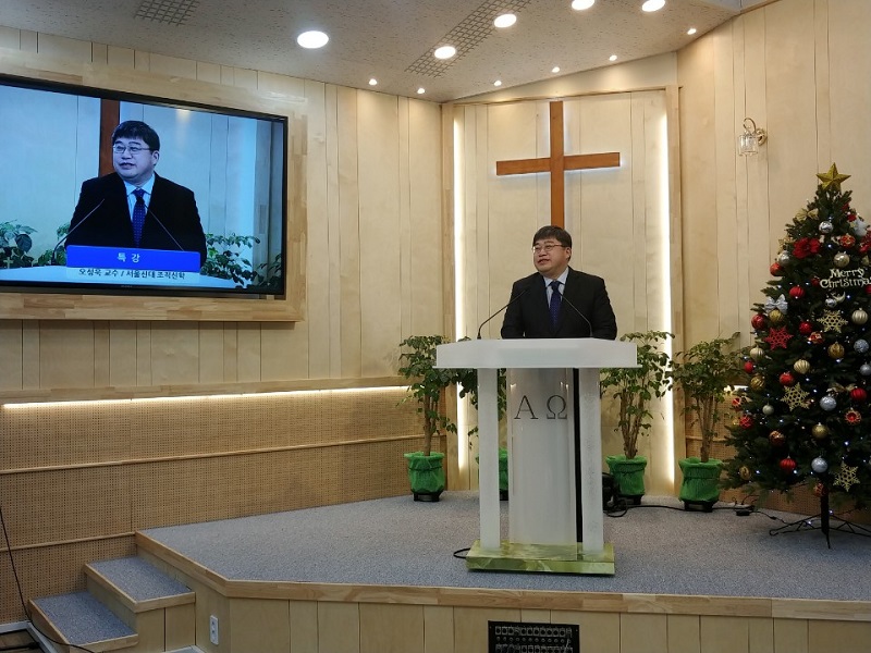 1부 신년하례예배를 마친 후 이어진 특강은 오성욱 교수(서울신대/조직신학 교수)가 “교회 갱신의 관점에서 전망한 존 웨슬리의 성결론”이라는 주제로 진행했다.