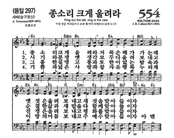 1절 “종소리 크게 울려라 저 묵은 해가 가는데 옛 것을 울려 보내고 새 것을 맞아들이자”