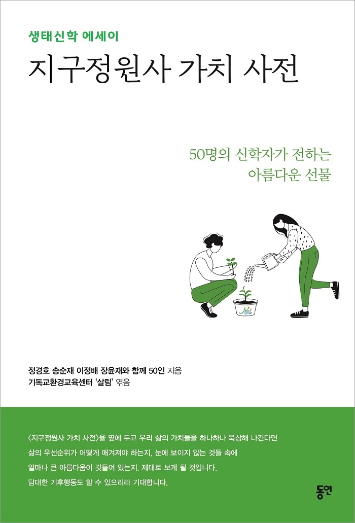 「지구정원사 가치사전」은 50명의 신학자들이 25개의 아름다운 가치를 기독교적 관점으로 풀고, 각자가 경험적 정의를 내리도록 질문을 품게 하는 생태살림 에세이집이다.