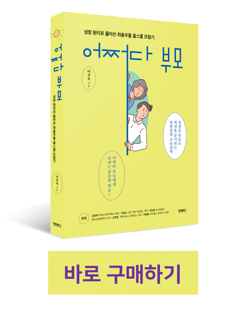 『어쩌다 부모』는 저자 교육 철학이 담긴 홈스쿨 모험기이다. 학습 결과가 아닌 성장을 목표로 과정을 중요시하며 자녀와 제자들을 이끌어 온 청소년지도자 마상욱 교수에게 박수를 보낸다. _이유남 교장, 『엄마 반성문』 저자