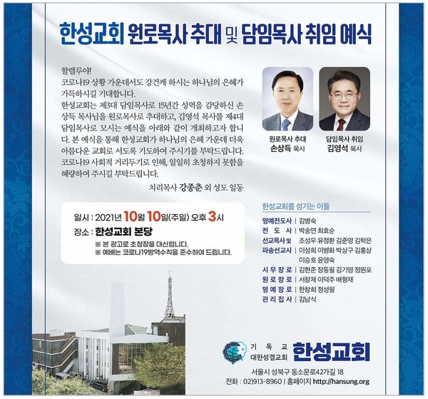 손상득(기성, 한성교회) 목사는 26세에 서울신학대학교를 졸업하고, 2021년 9월 만65세에 조기 은퇴를 하였다. 목회 년수가 40년이다. 손 목사는 40년의 목회시간을 뒤돌아보면서 "지금까지 써주신 하나님께 감사"를 드린다는 고백을 남겼다. 그의 목회는 하나님의 인도하심에 철저히 맡겼다. 하나님 "가자" 하시면 모든 것을 내려놓고 순종하는 삶을 드렸다.