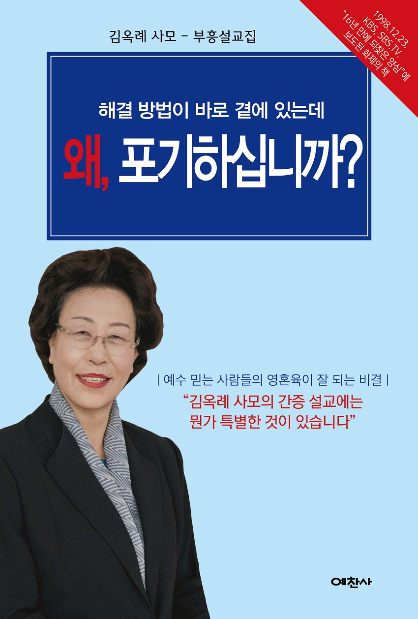 이 책은 1988년 12월 23일 KBS, SBS TV.저녁뉴스에서 소개된 베스트셀러이다. 저자 김옥례 사모는 개봉동 봉신교회 김승복 원로목사의 아내로서, 서울신학대를 졸업하고 전도사로서 40여년 목회를 내조하면서 성령님의 강력한 역사로 국내외 부흥집회와 상담사역을 통해서 하나님께 큰 영광을 돌린 성령의 전도자이다. 김옥례 사모는 빨리 하나님께 돌아와서 회개하고 팔자를 고치고 성령의 불을 받고 마귀의 침투 통로를 봉쇄하고 구원받으라고 외친다. 15년 동안 이단에 빠진 자와 알코올 중독자들과 병든 자들과 귀신들린 자들의 삶을 변화시킨 기적의 현장을 볼 수 있다. 독자들의 간곡한 부탁으로 다시 재출간하게 되었다.