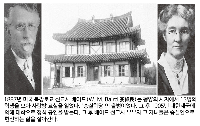 증손자인 윌리엄 베어드 4세(1936년생), 리처드 베어드 3세(1938년생), 그 외 7명의 증손자녀 들은 그 신앙의 전통을 이어가며 “어디가야 좋을지”의 찬송가를 작곡한 안애리 선교사의 후손인 것을 자랑스럽게 말한다. 고손자인 윌리암 베어드 5세(1970년생), 리처드 베어드4세(1971년생), 페리 아서 베어드 4세(1993년생), 존 스톡턴 베어드3세(1991생) 등 믿음의 별들의 후손들이 한국 선교의 선구자였던 배위량 선교사의 후손인 것을 자랑스럽게 생각하며 숭실학당의 ‘진리와 봉사’의 건학 이념을 오늘도 구현하고자 한다. 또 그들은 숭실 인재인, 조응천 박사, 현제명, 김동진 작곡가, 김현승 시인, 한경직 목사 등을 배출한 민족 사학을 위해 기도하고 있다. 한 사람의 희생의 씨앗은 밀알의 숭고한 결실로 이뤄가는 하나님의 솜씨를 보게 된다. 오늘도 우리는 그 대열 속에서 기도하며 뒤를 이어가는 길에 서있을 것이다.