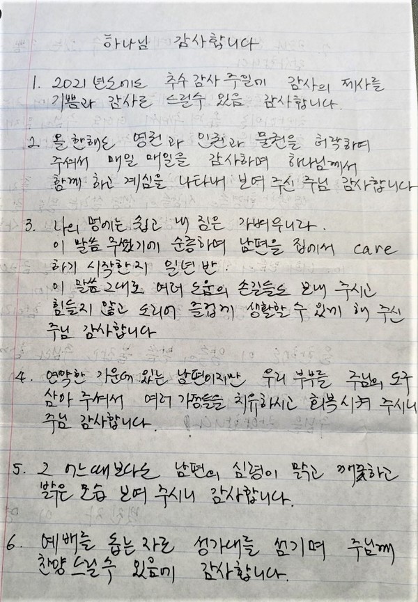 (5)그 어느 때 보다도 남편의 심령이 맑고 깨끗하고 밝은 모습 보여 주시니 감사합니다.