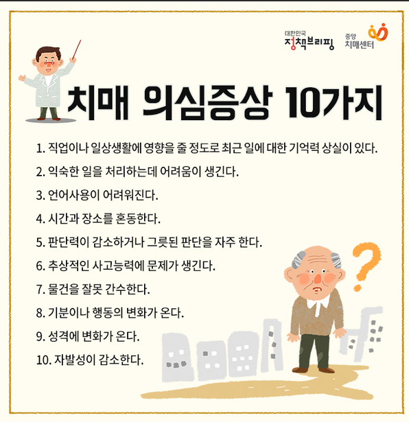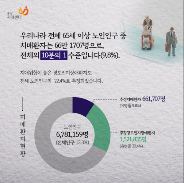 현재 치매는 60대 100명중 3명, 70대 100명중 18명, 80대 100명중 65명이 치매라고 한다. 향후 치매 환자 수는 2050년까지 20년 마다 2배씩 증가할 것으로 예상하고 있다. 1995년부터 세계보건기구(WHO)는 국제 알츠하이머협회와 함께 매년 9월 21일을 세계치매의 날로 제정하였으며, 우리나라도 ‘치매 극복의 날’로 지정하였다.