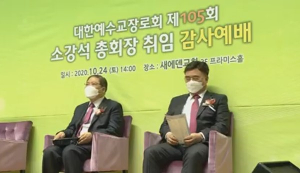 한편 지난 9월 21일 대한예수교장로회(합동) 제105회 총회가 새에덴교회(소강석 목사)를 본부로하고 각 35개 거점교회별로 50명 미만의 총대들이 모여서 온라인 화상회의로 개최되었다. 이번 제105회 총회에는 목사, 장로 대의원 1385명이 참석했다. 이날 총회에서 소강석 목사가 총회장으로 취임하여 의장석에서 회의를 진행하였다. 사상초유의 화상원격 ZOOM 총회는 오후 2시에 개회하여 예정된 시간에 소강석 총회장의 축도를 끝으로 파회하였다.