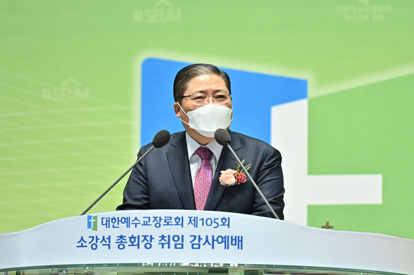 소강석 총회장은 취임사에서 한국교회 장자교단으로서의 위상 회복과 코로나 시대에 걸 맞는 총회 시스템 개혁을 약속했다. 소강석 총회장은 “합동총회를 비롯한 한국교회가 가장 어려울 때 총회장 자리에 섰다. 1년 동안 외롭고 고단한 광야에서 한국교회와 세계교회사에 합동 총회 이름을 다시 써내려가 수 있도록 희생의 밑거름이 되겠다.”고 했다.