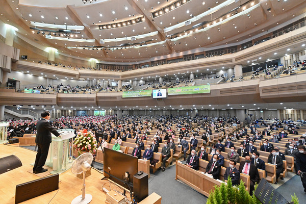 원근각지에서 이렇게 오셔서 축하를 해 주셔서 감사합니다. 통상 총회장 취임감사예배를 일찍 하는데 코로나로 인하여 5시간 총회를 하다보니까 워낙 처리할 일들이 많아서 그 일들을 어느 정도 처리하고 오늘에야 감사예배를 드리게 되었습니다.