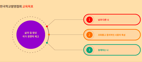 한국학교발명협회 홈피에 들어가면 인사말로 다음과 같이 쓰여져 있다. "21세기는 지식기반사회로서 무한 경쟁 시대에 살아남기 위해서는 고부가 가치를 창출할 수 있는 창의적이고 도전적인 글로벌 인재를 육성하여 개인의 자아실현은 물론 국가 경쟁력을 높여야 한다" 전한다.