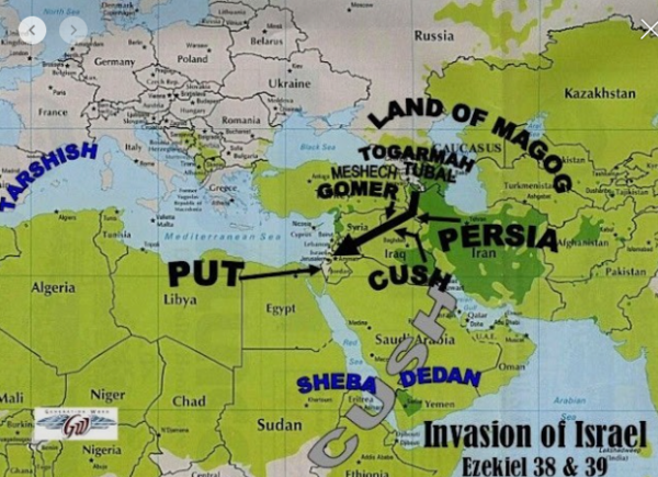 <바사>는 옛 명칭으로 <페르샤> 곧 지금의 <이란>입니다. <구스>는 지금의 <에디오피아>입니다. <붓>은 지금의 북 아프리카 곧 <리비아>입니다. <고멜>은 지금의 <게르만>입니다. <도갈마>는 지금의 <아르메니아>입니다.